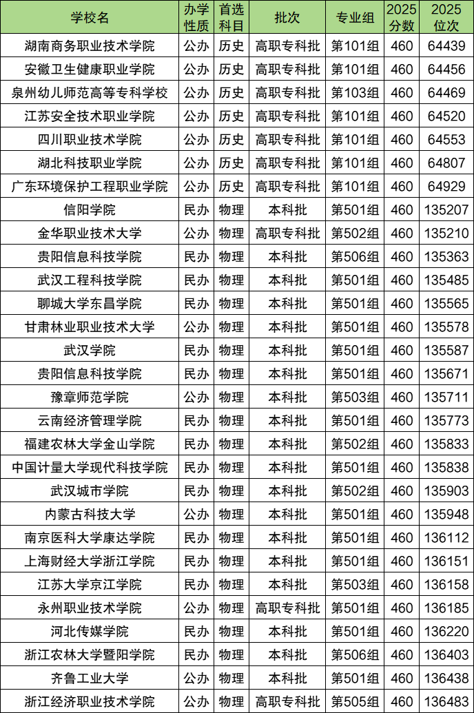 2026年460分可以录取哪些大学需要参考2025年录取分数线数据,下面根据各省2025年高考招录情况,整理除了460分的大学名单汇总。