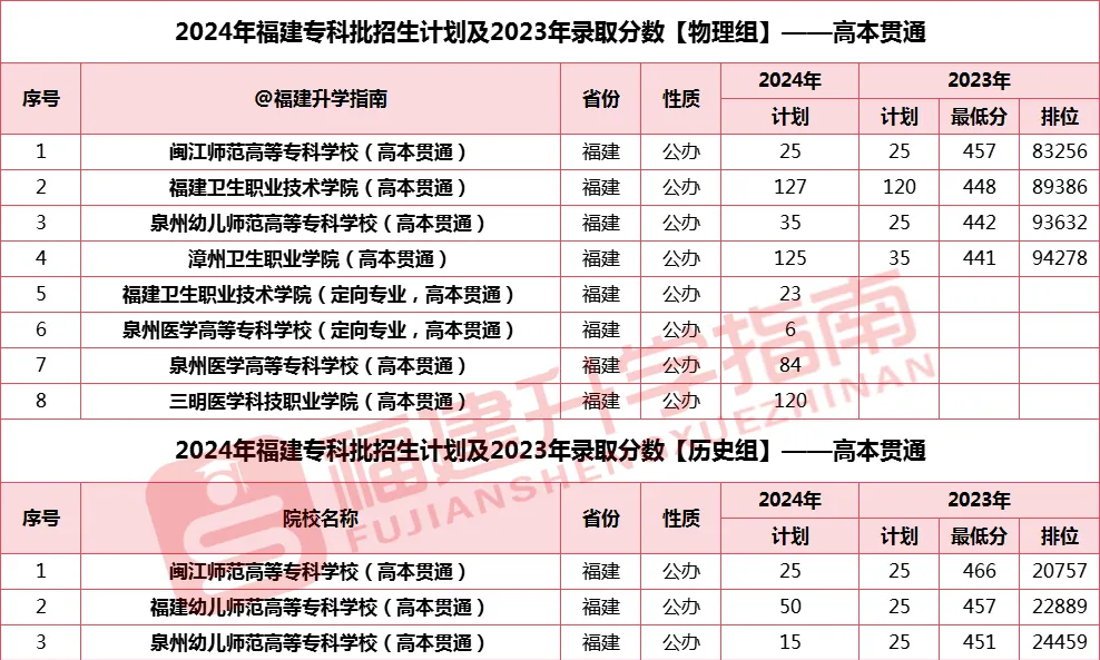 2024年福建省内高本贯通计划一共有7所院校招生,比2023年新增了2所!