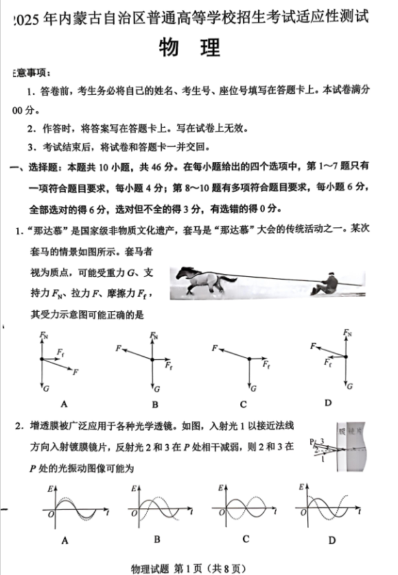 因为本次新高考适应性考试物理、化学、生物、思想政治、历史、地理6门科目是由各省单独出题,所以各省物理科目的试题都不一致,本文就分省整理出具体的物理试卷及答案。