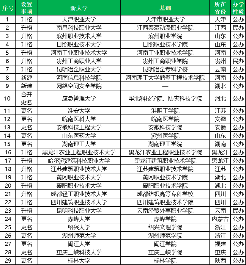 这些院校的设立和更名,体现了国家对高等教育的重视和支持,也反映了地方经济社会发展的需求。