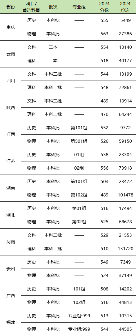 2024年四川警察学院在全国本科批的录取分数线位于470分~563分之间,不过招生地区比较少,只在12个地区招生,具体的分数线如下: