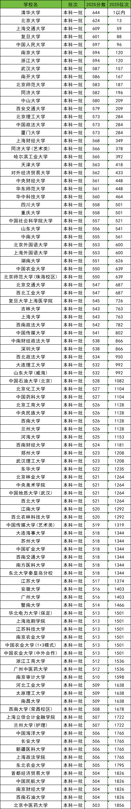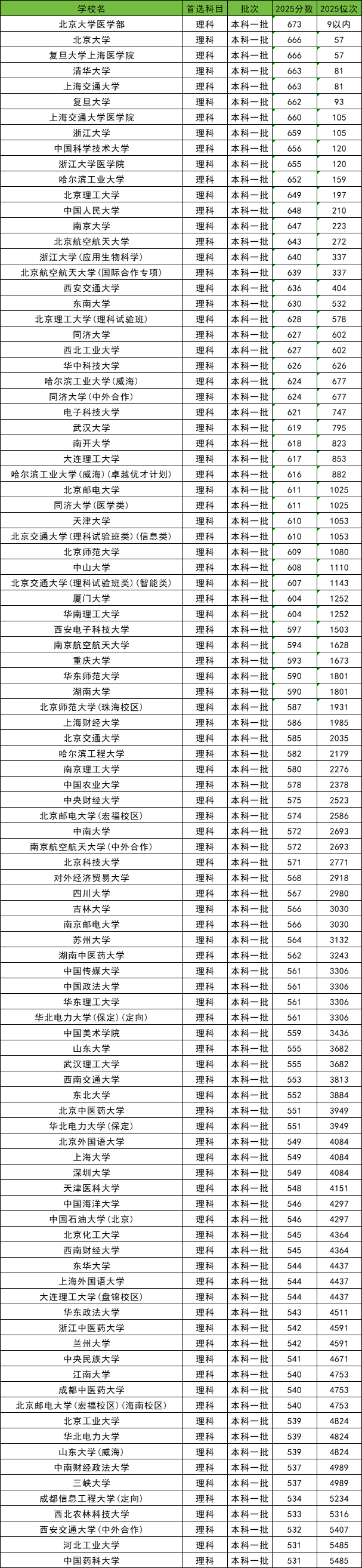 下面是2025年在新疆省理科类录取分数线及位次排名前百强高校一览表(滑动查看):