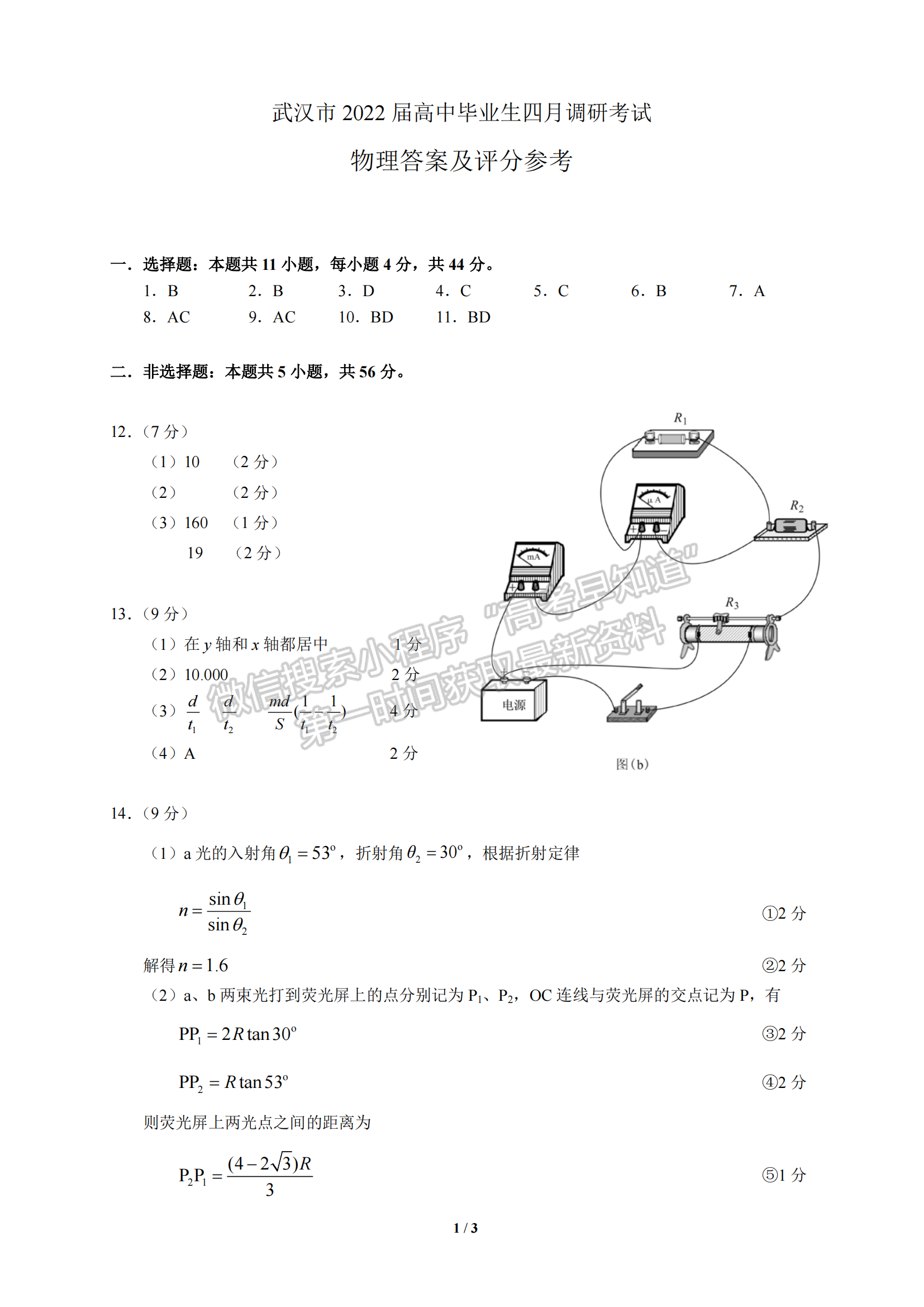 2022届武汉高三四调将于2022年4月26日开始,本场考试结束后,本文将尽快更新武汉高三四调物理历史答案,各位同学可以持续关注本文。