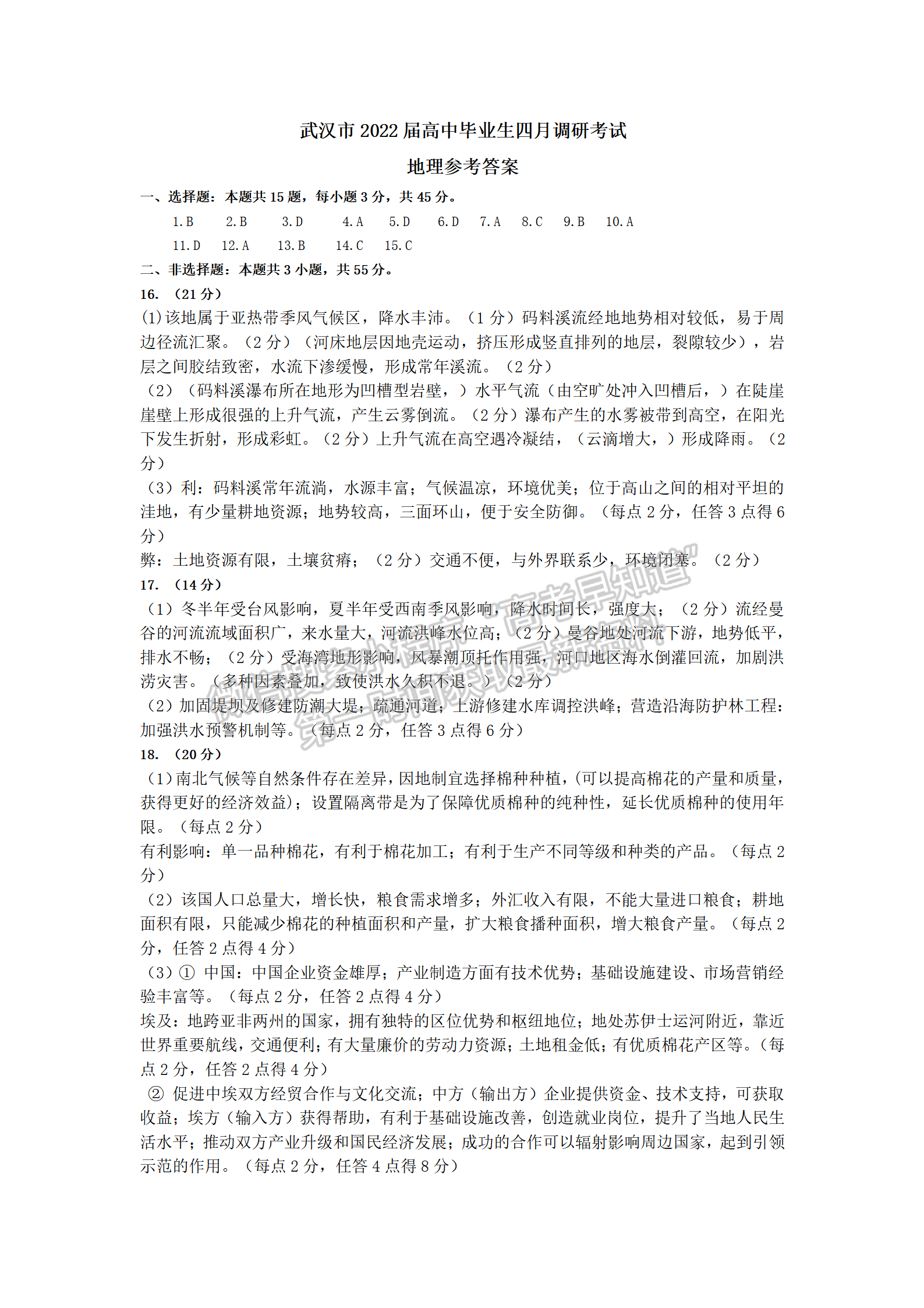 关于2022年武汉高三四调政治地理试卷答案,本文将在考试结束后尽快更新。