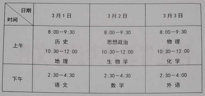 2023年甘肃高中学业水平考试时间是2023年3月2日至3月3日和3月6日至8日。