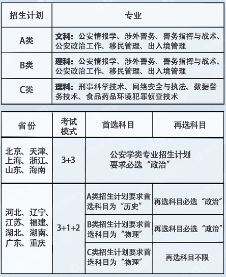 在报考中国人民警察大学前,新高考省份的考生还要弄清楚它对专业选科的要求,公安类专业基本都要求必选政治科目。以下为中国人民警察大学在不同新高考省份的选科要求,供同学们参考。