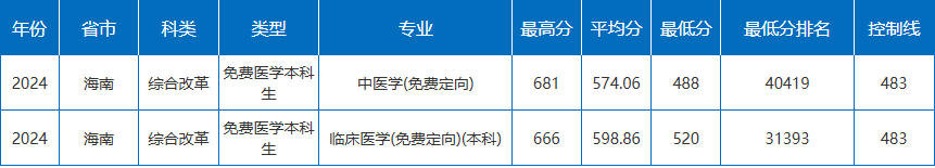 篇幅有限,这里仅以海南医科大学为例,分析定向医学生招生分数线情况: