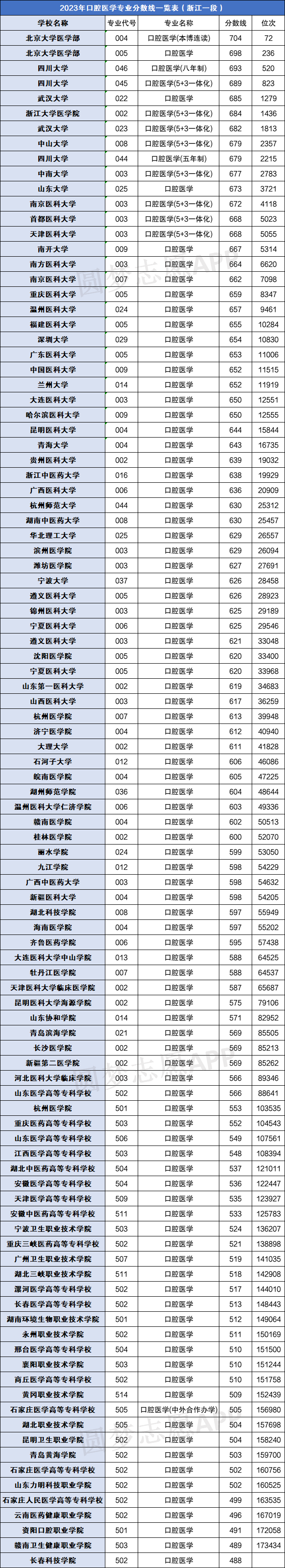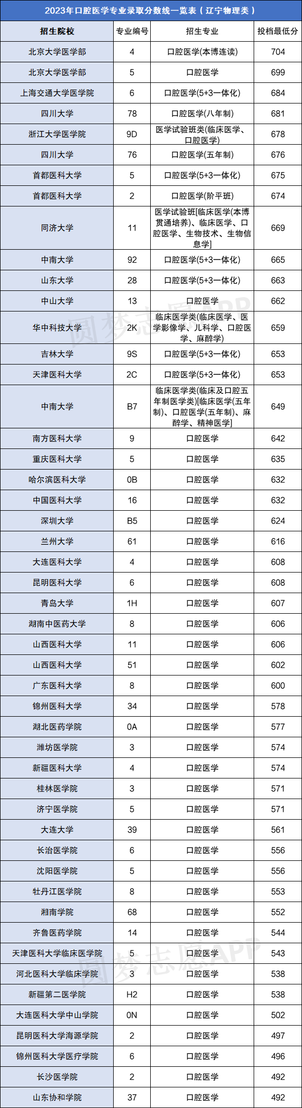 出于口腔医学的学科特性,该专业一般是在物理类招生,因而小编整理的是口腔医学2023年在辽宁物理类和浙江的分数线。