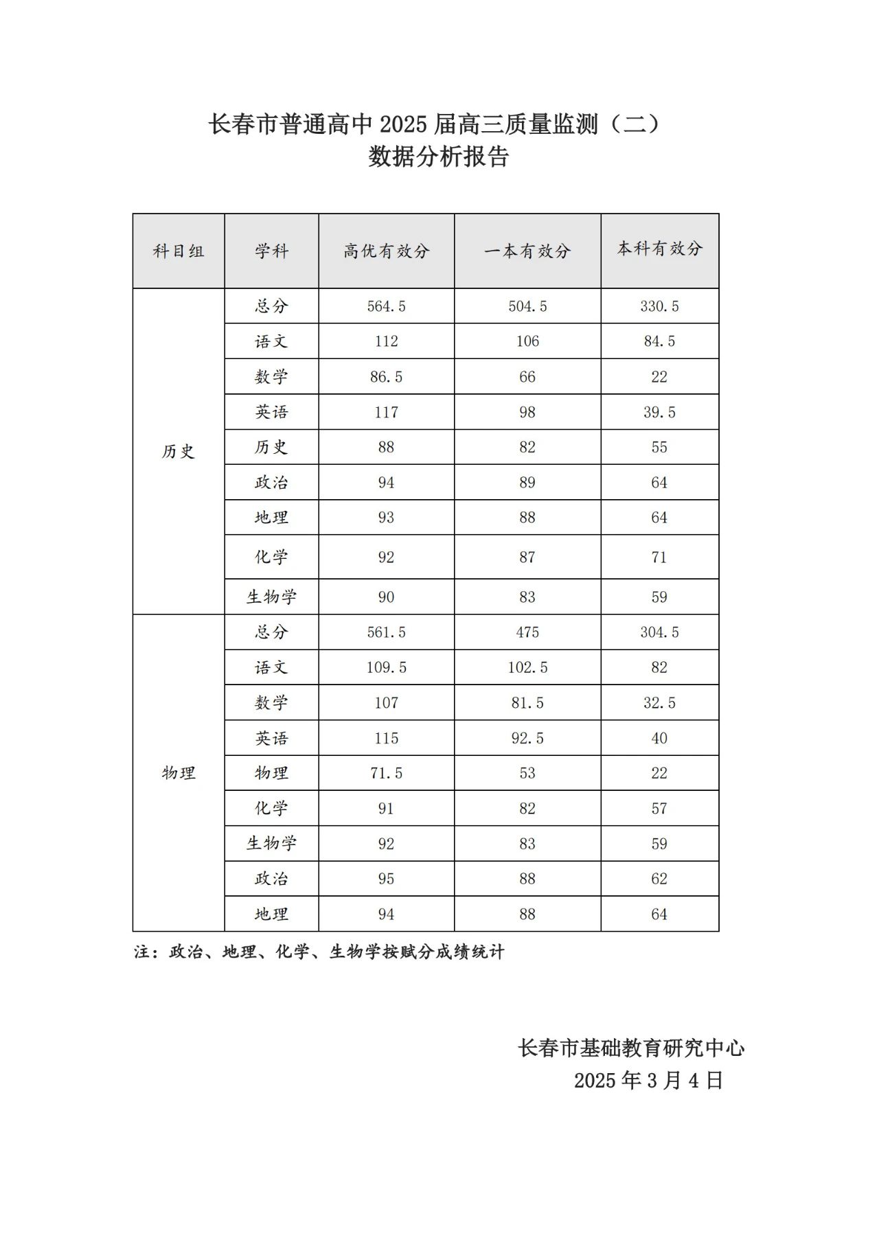 下面就是2025长春二模各科有效分一览表,供查阅:
