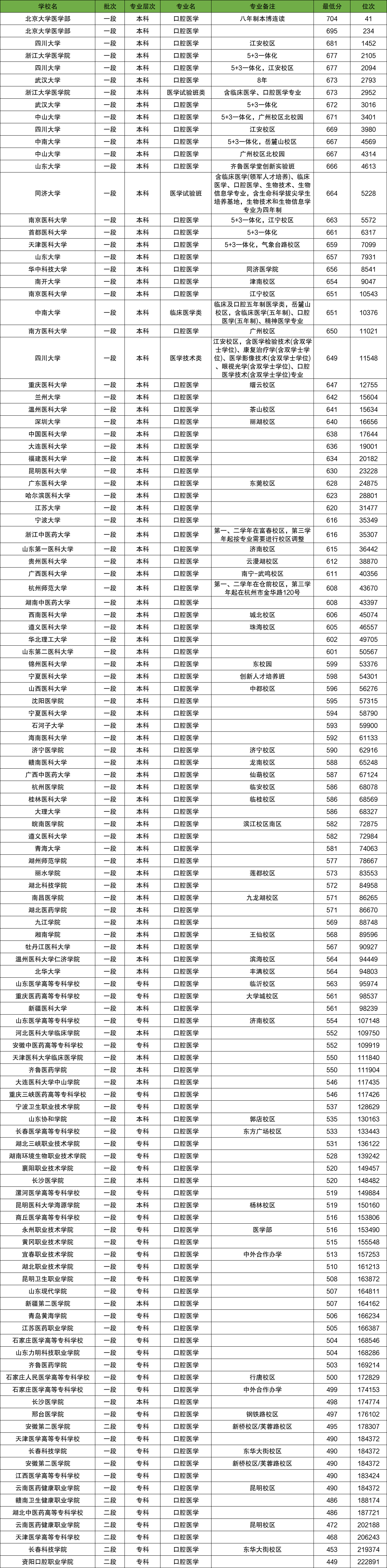 排名前三的院校收分也是不低的,毕竟是我国985、211院校,本身院校的录取分数线就高,而口腔医学专业这样的热门专业,收分还会高上一些,所以如果不是成绩特别好的考生,想要报考这三所院校的口腔医学专业还是比较难的。