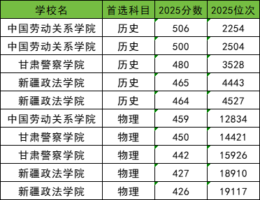 2025年新疆文科二本政法大学最低录取分数线是369分,收分最低的大学有新疆警察学院;理科二本政法大学最低分是336分,收分最低的大学是新疆政法学院。