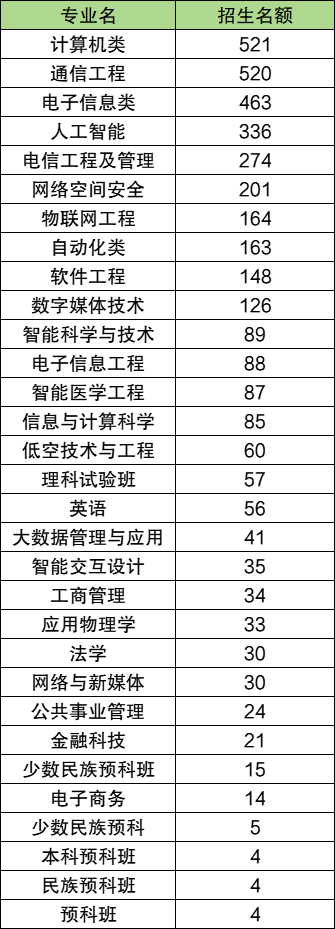 北京邮电大学招生专业有31个,招生计划人数最多的专业为计算机类,2025年在全国招生人数是521人(含不同方向)。招生人数超过500人的专业还有通信工程(520人)。下面是这两个专业各省具体招生人数汇总: