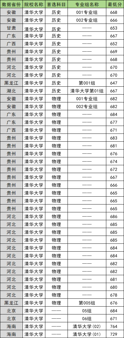 | 清华大学 | 历史 | 第101组 | 650 |