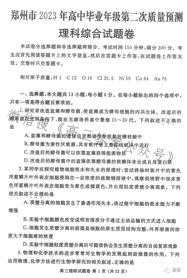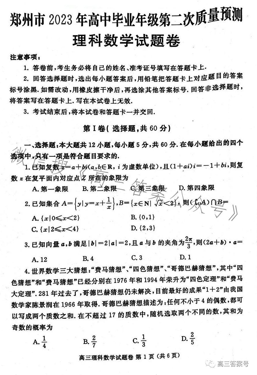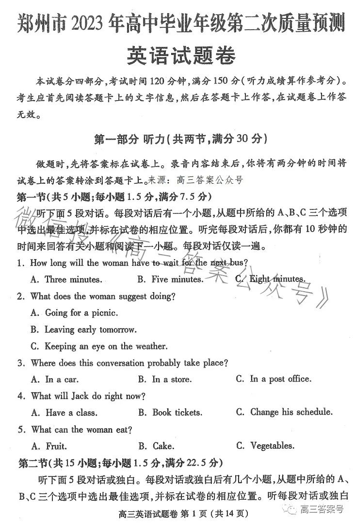 2023郑州二模各科试卷及答案解析:https://www.gk100.com/read_3258417221.htm(点击或复制链接即可查看)