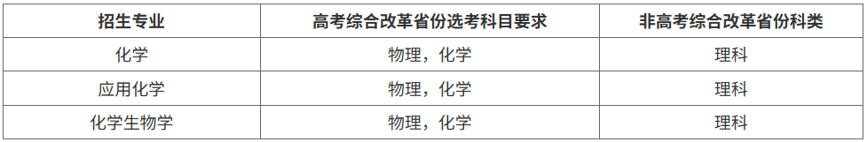 学校强基计划招生专业为化学、应用化学、化学生物学。