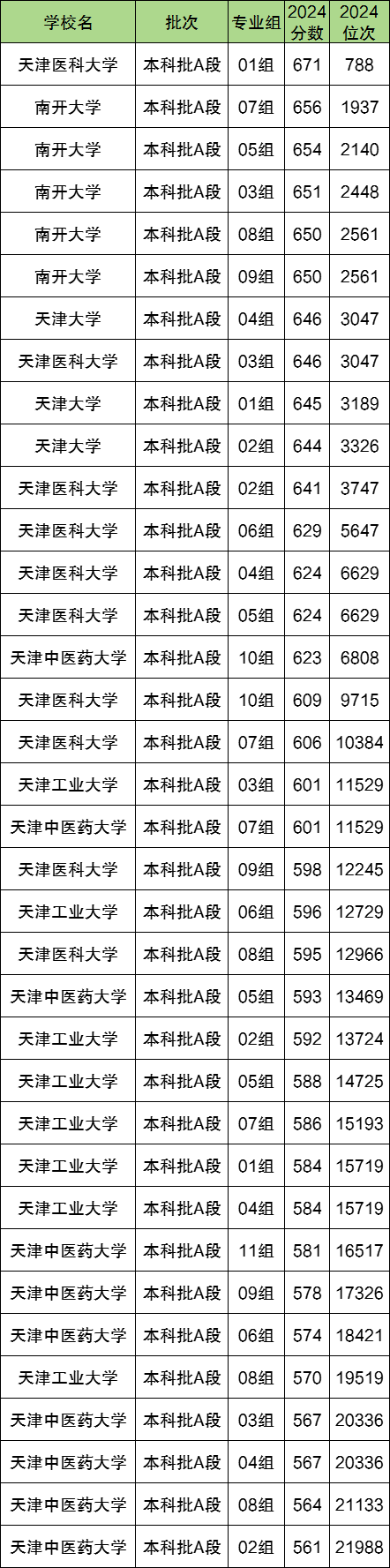 下面整理了天津双一流大学2024年在本市的录取分数线,详情如下: