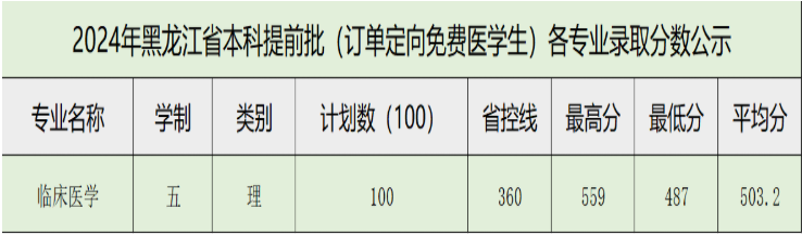 2024年黑龙江定向医学生院校录取分数线最低分:牡丹江医科大学487分。