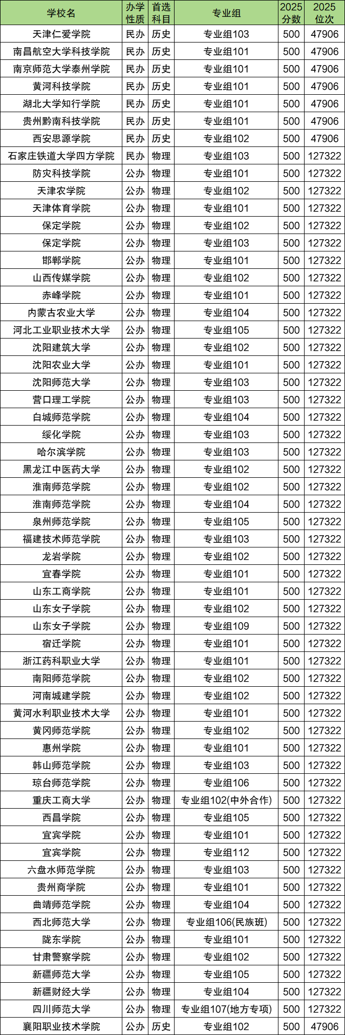 | 学校名 | 办学性质 | 专业组 | 2025分数 |