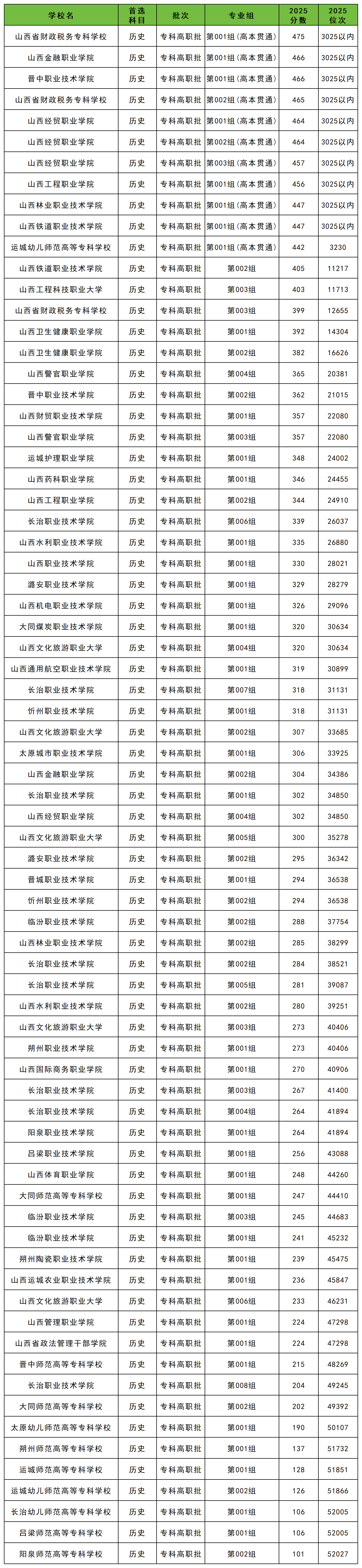 本文整理的是2025年山西省所有公办专科大学录取分数线,供2026年的考生们参考。