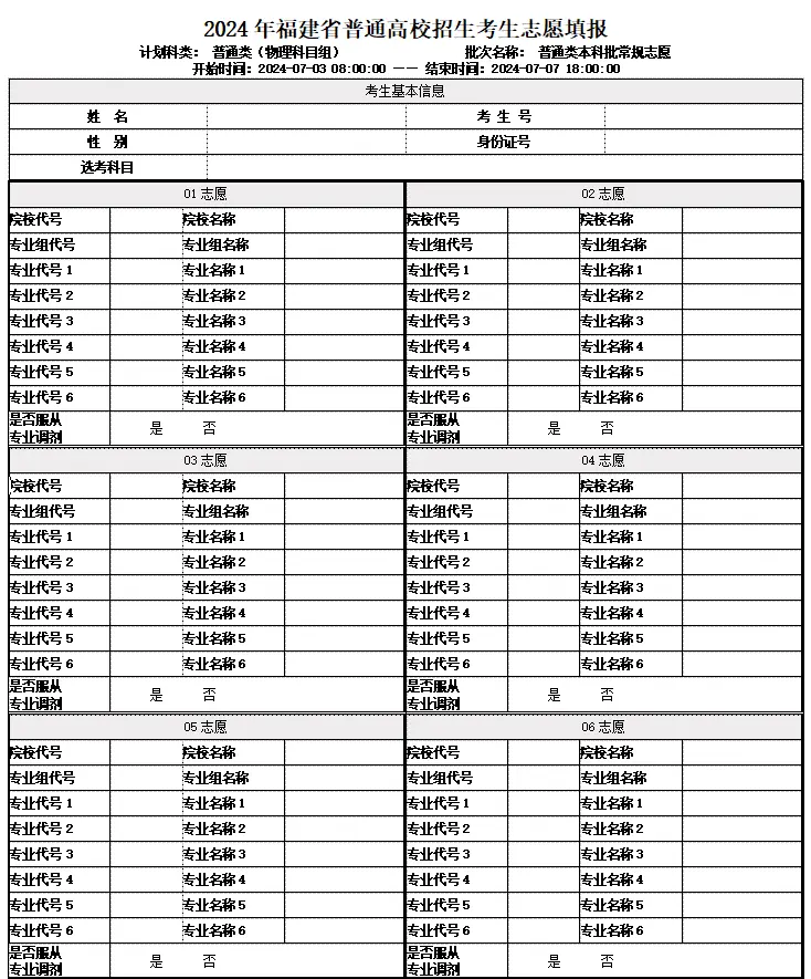 三、福建新高考40个志愿样表
