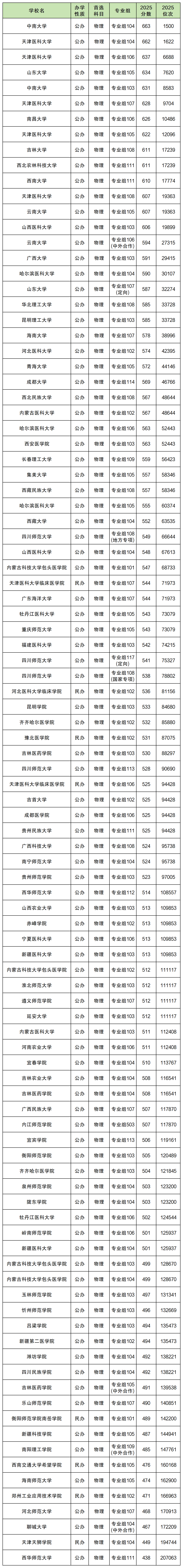 注:本文数据筛选的为纯理科组合可报院校,即首选科目为物理,再选科目必选化学和生物。