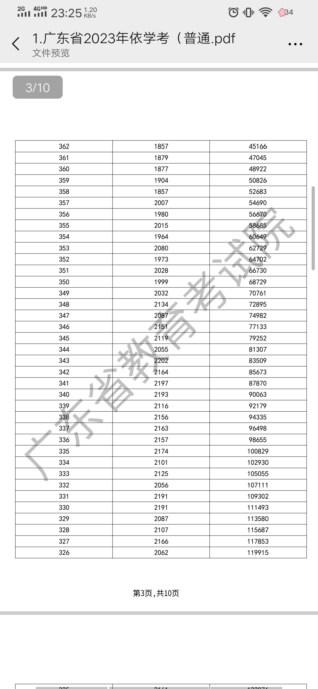 刚刚广东省教育考试院公布了2023年广东学考分数段排位情况,2023年广东学考普通类共有351242人上线,其中300分以上的考上有172202人。