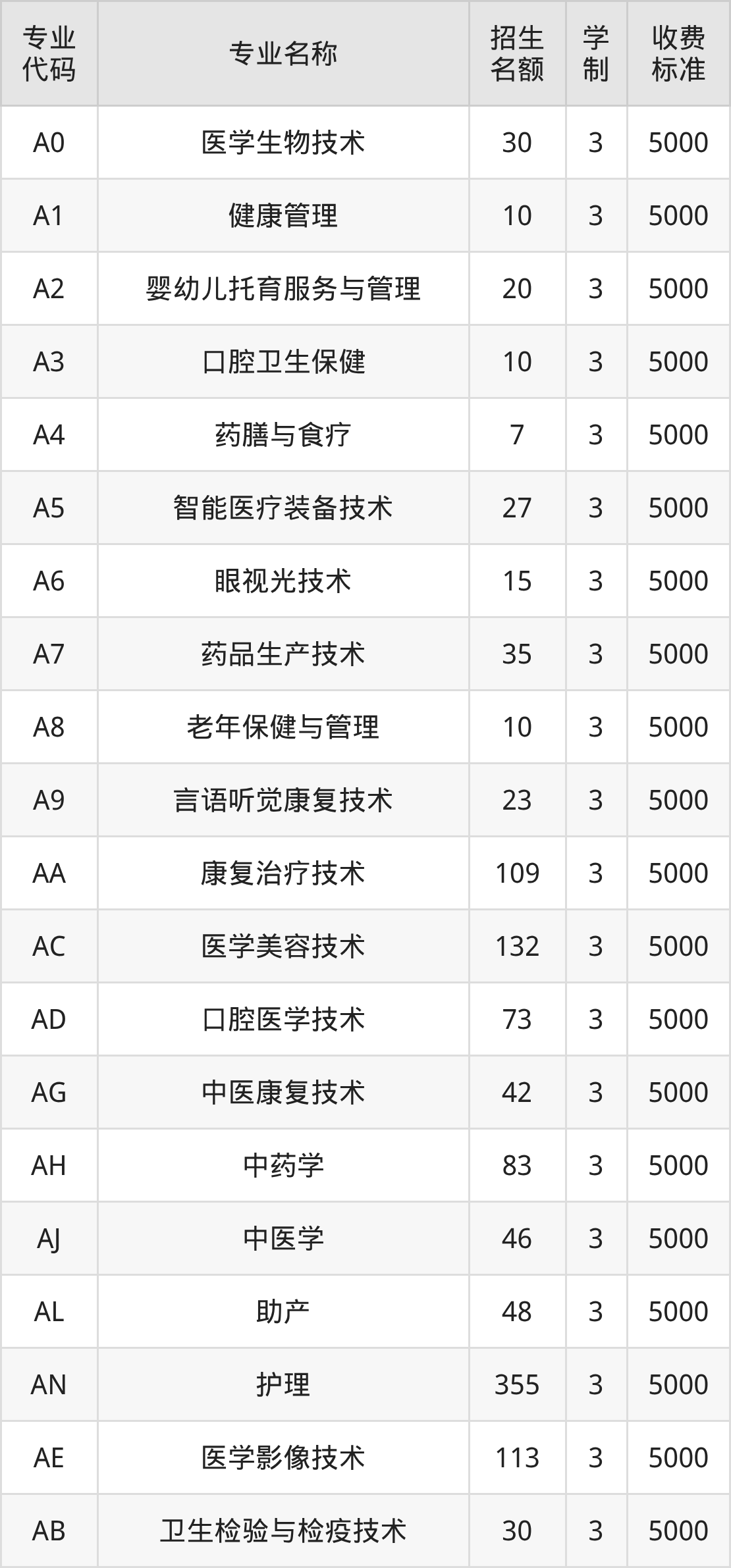 | 0A | 康复治疗技术 | 114 | 3 | 5000 |