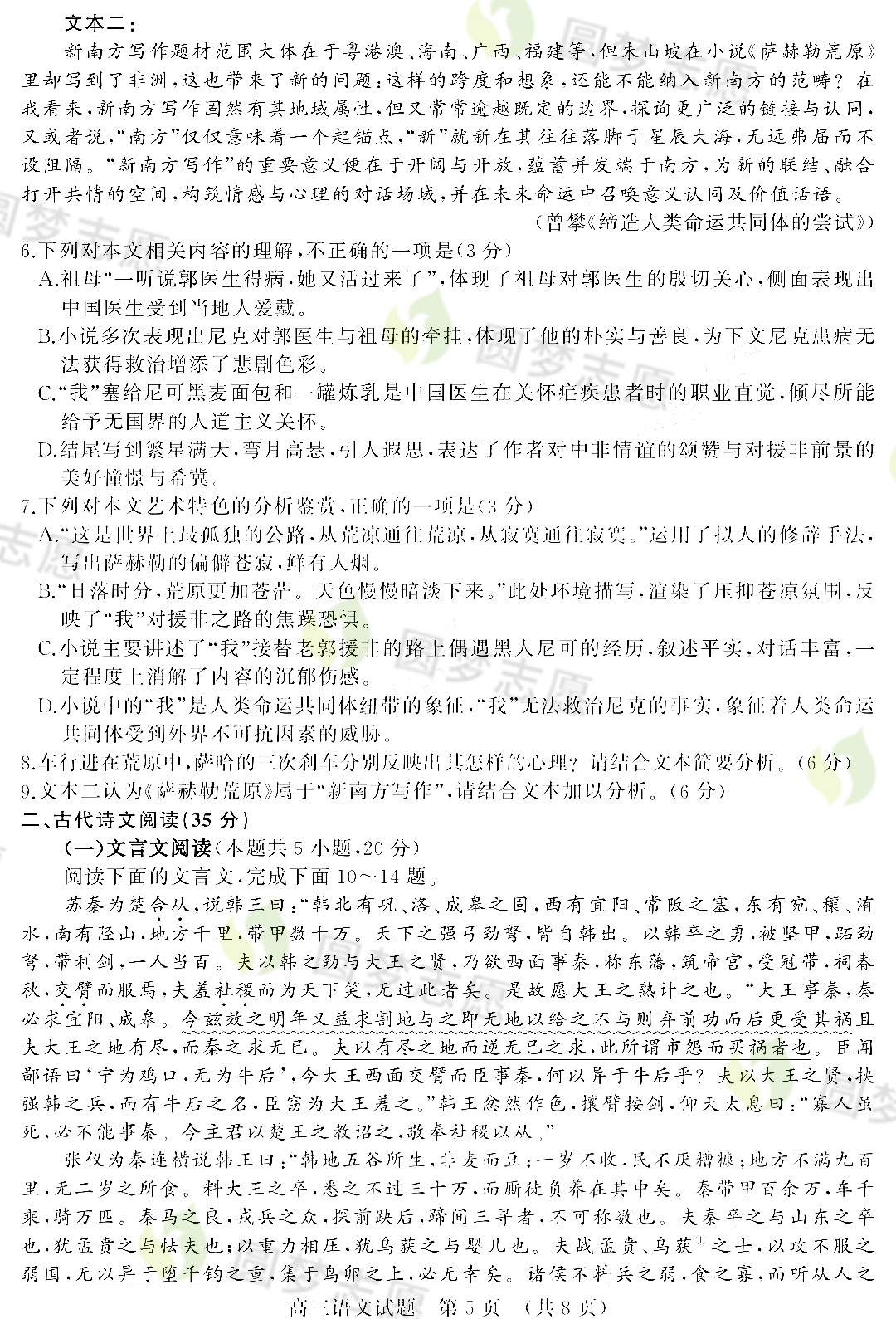 以下就是2023年度山东省济南市高三期末考试语文科目的试卷试题以及参考答案解析,希望对大家的复习有所帮助。