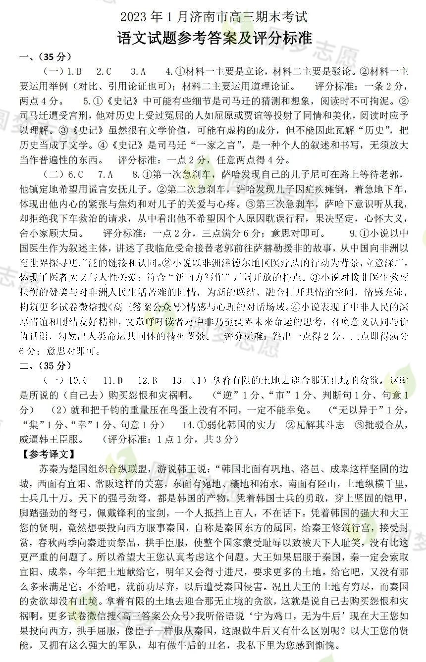 2023济南高三期末考试答案及试卷解析为大家更新完毕,本期为大家整理了山东省济南市2023年1月进行的高三期末检测考试各科试卷真题以及参考答案解析,含济南高三期末语文、数学、英语、物理、化学、生物、政治、历史、地理所有试题解析,供参考。