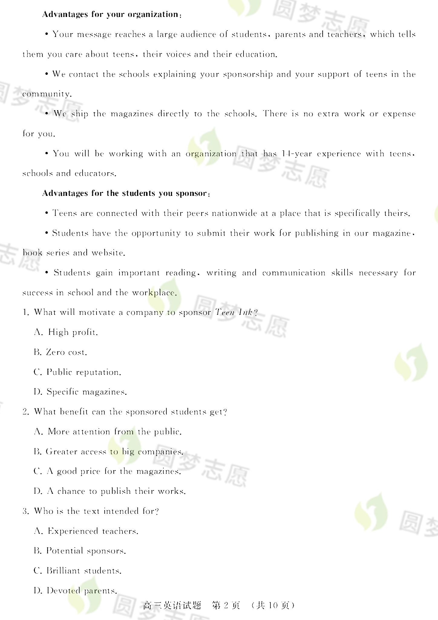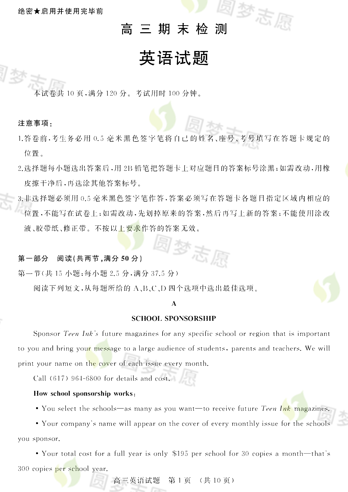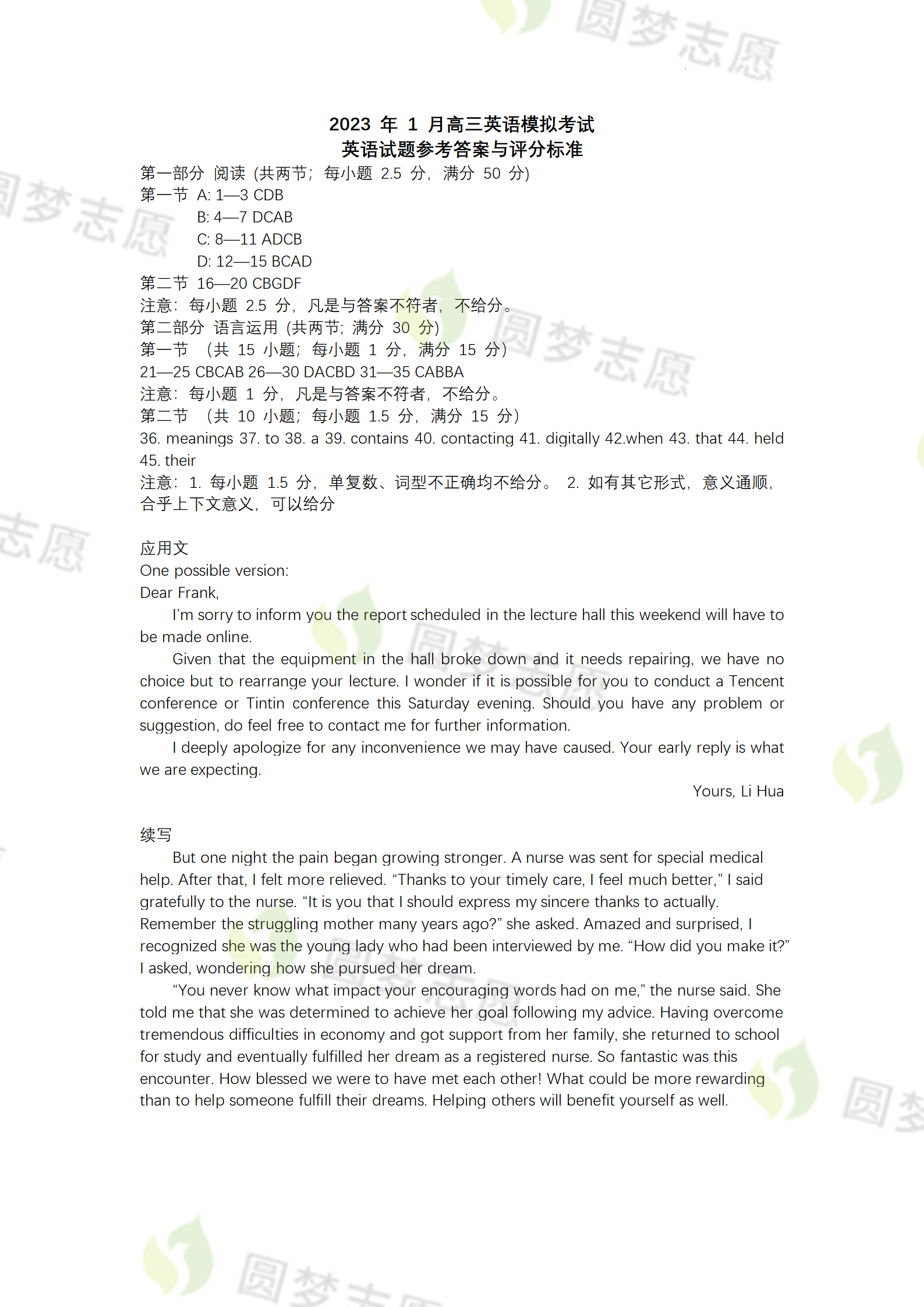 以下就是2023年度山东省济南市高三期末考试英语科目的试卷试题以及参考答案解析,希望对大家的复习有所帮助。
