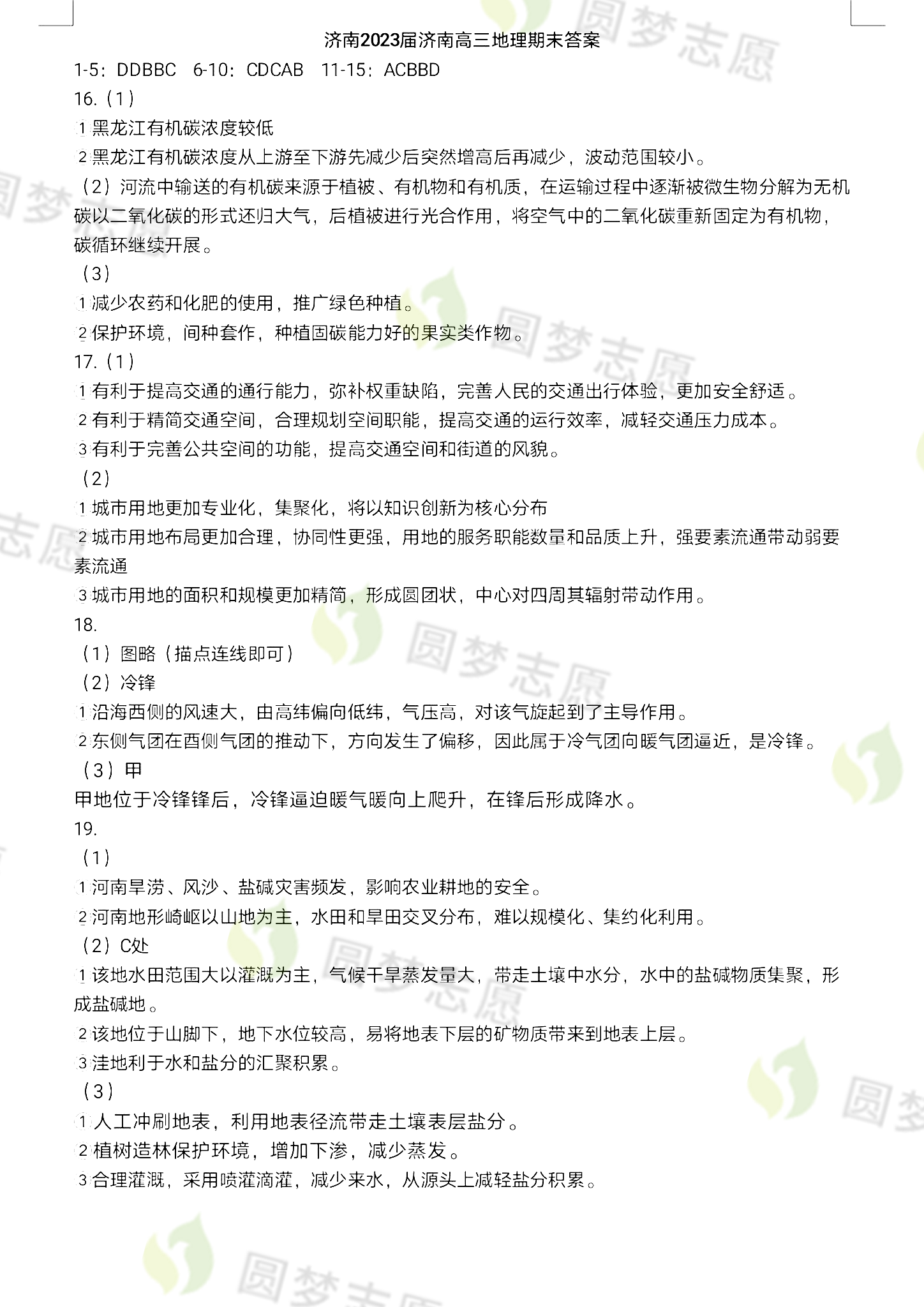 以下就是2023年山东省济南市高三期末考试地理科目的试卷试题以及参考答案解析,希望对大家的复习有所帮助。