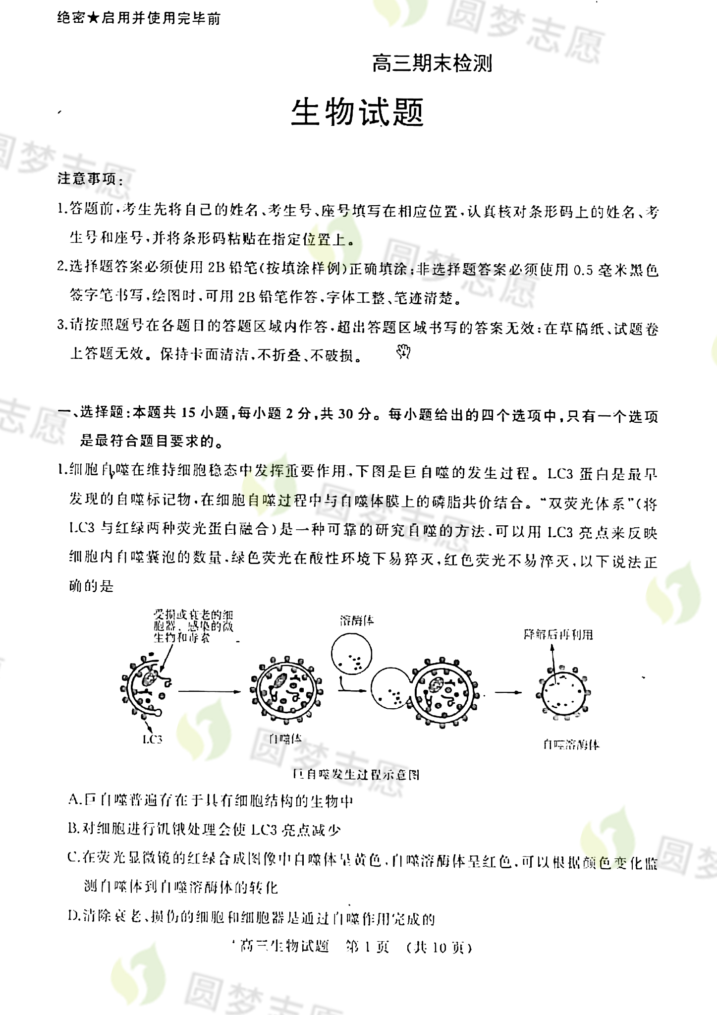 以下就是2023年度山东省济南市高三期末检测生物科目的试卷试题以及参考答案解析,希望有所帮助。