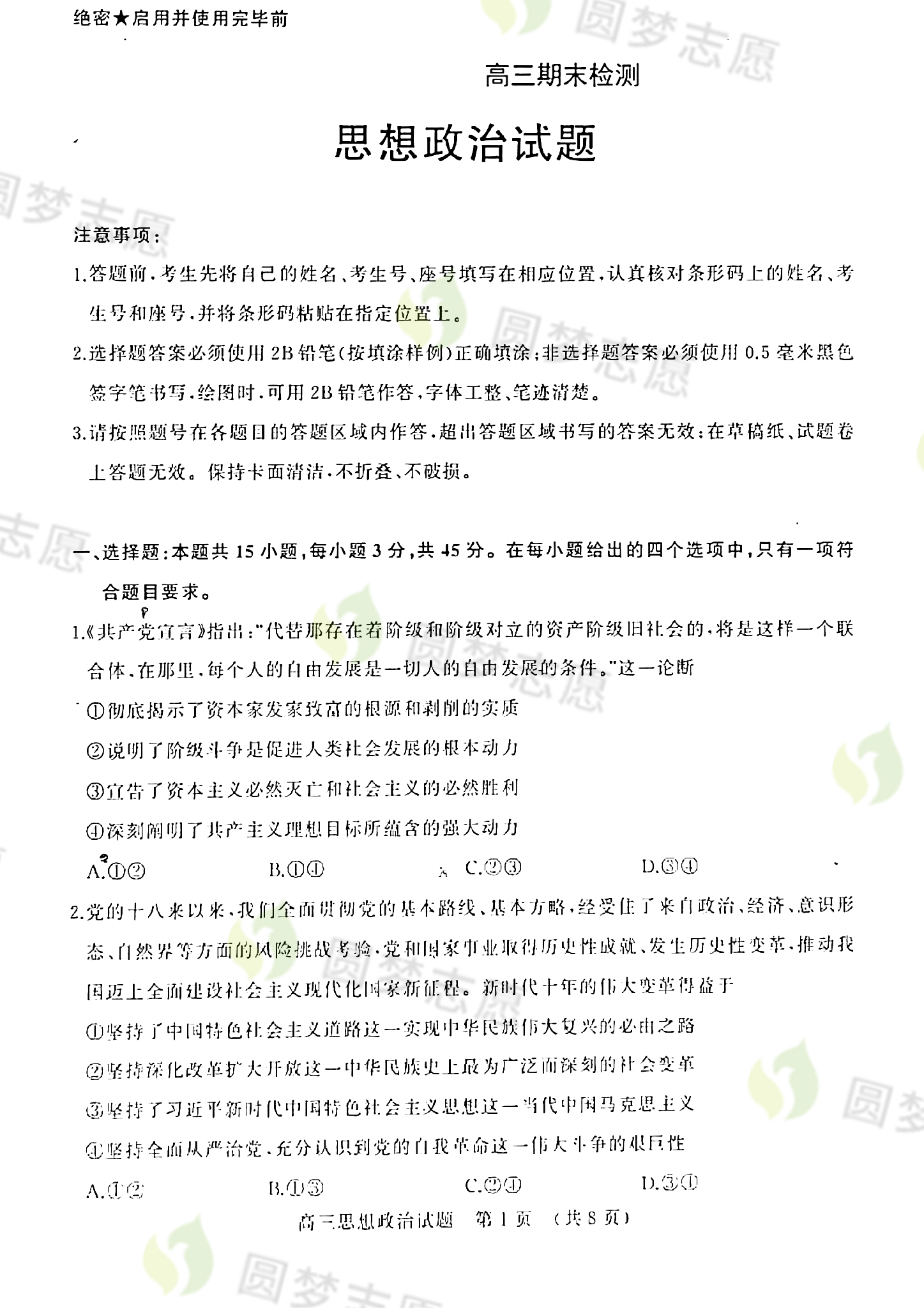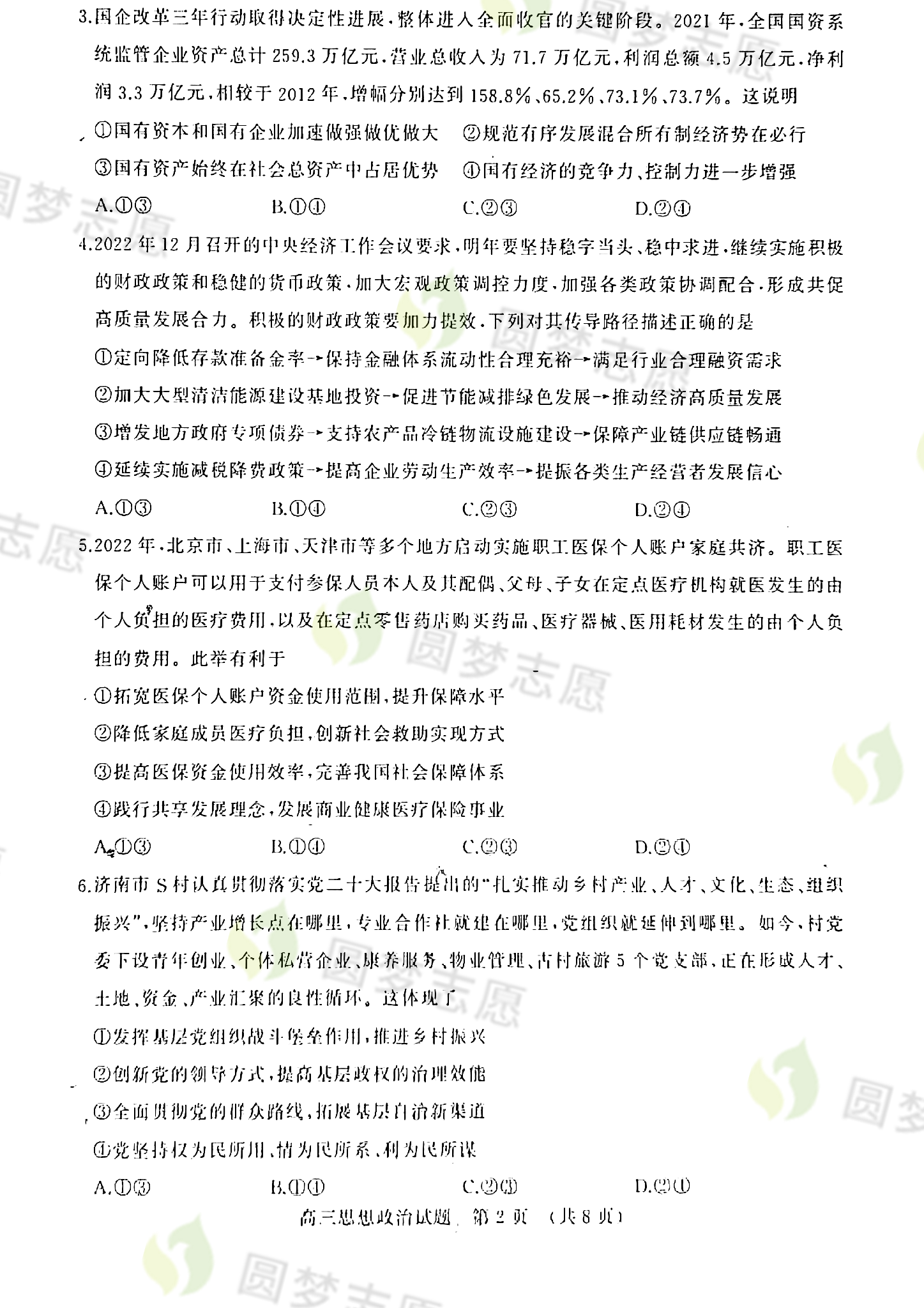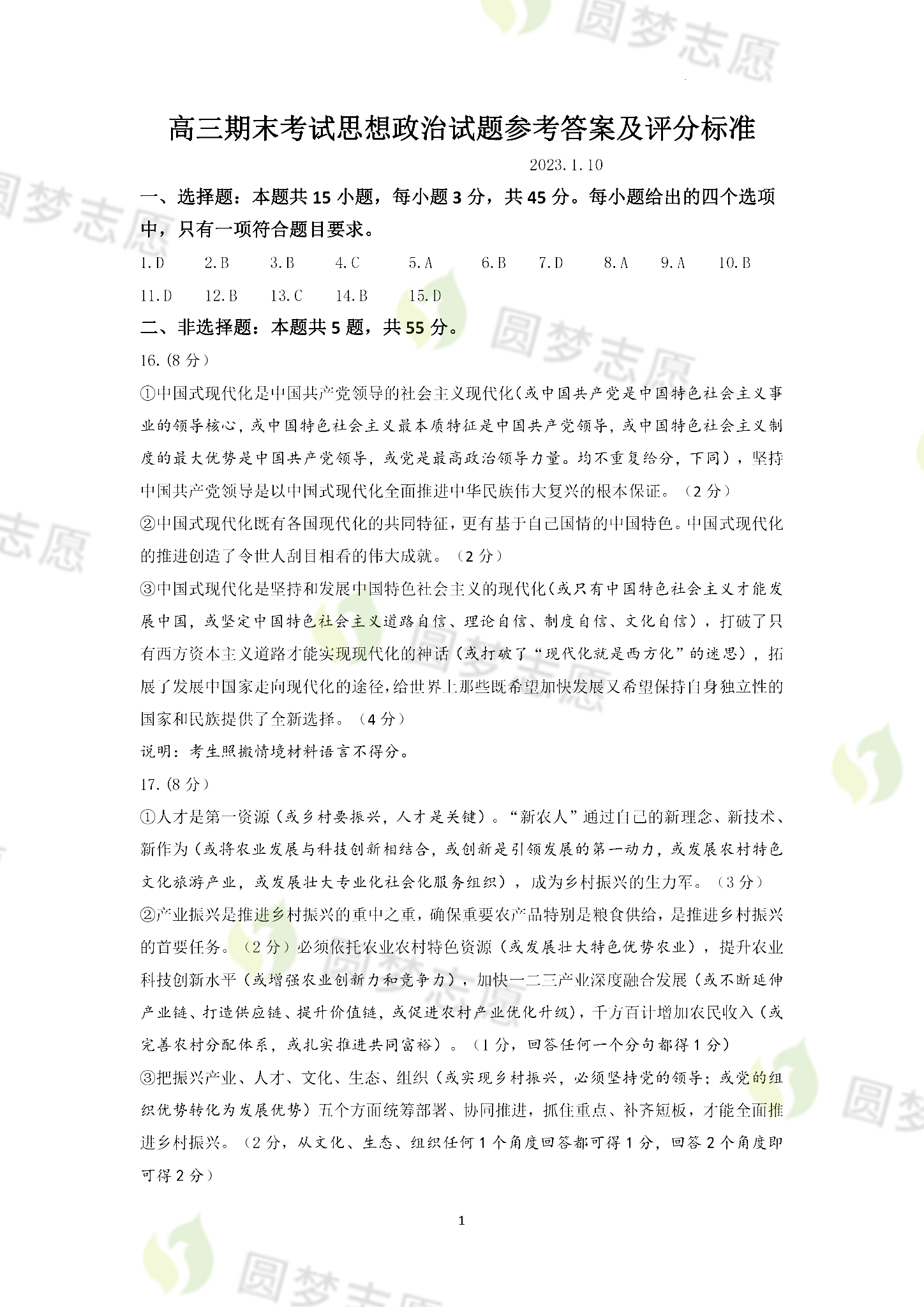 以下就是2023年度山东济南市高三期末考试政治科目的试卷试题以及参考答案解析,希望帮助到大家。