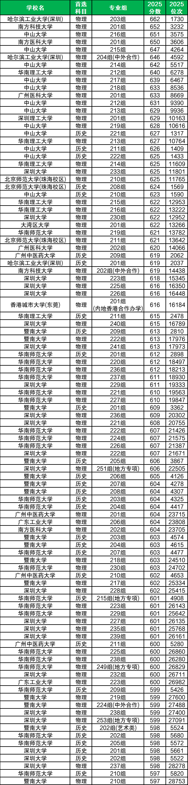 报考建议:冲刺本地985(中大、华工)热门专业,或省外顶尖院校冷门专业组。如华工“计算机组”658分、“土木组”635分,二者分差较大。