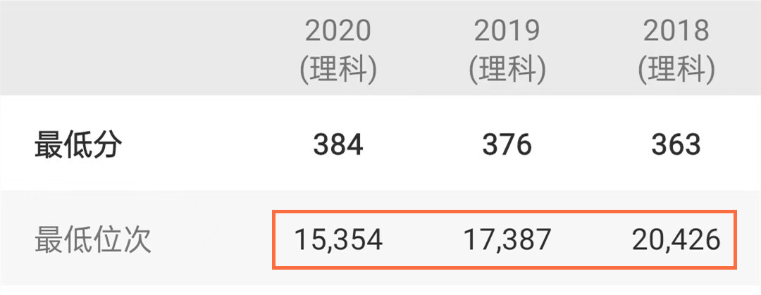 举例说明,某专业最低分对应的三年位次为15354~20426名,你的高考位次若超过15354名,大概率会被该专业录取↓