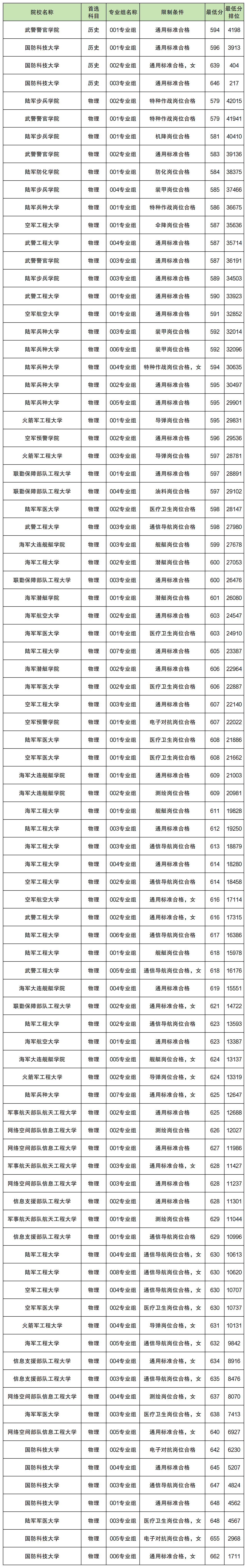 因为全国各大军校在各招生地区的分数线都不相同,本文就以安徽为例,整理出2025年军校在安徽的录取分数线,供参考。