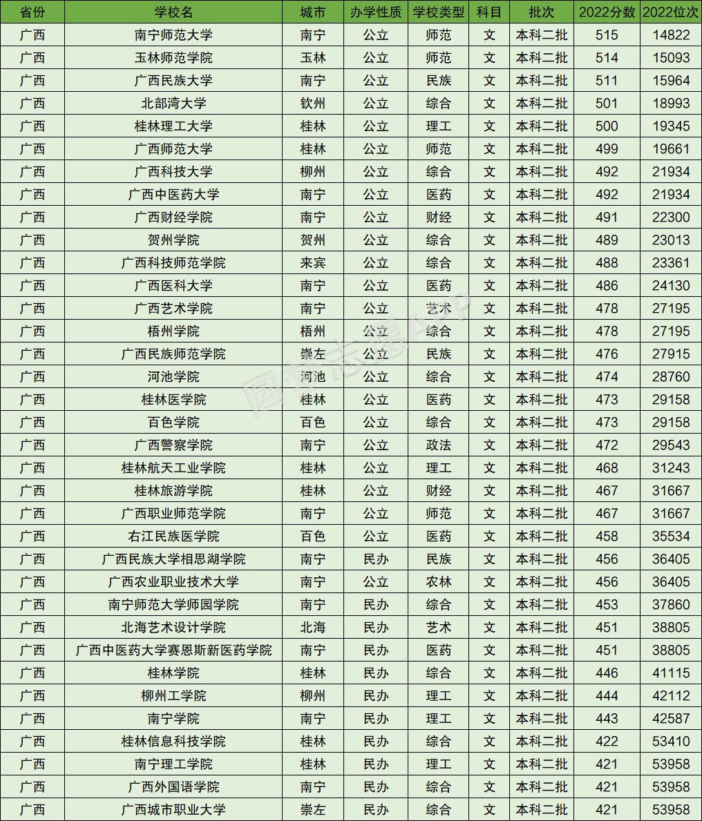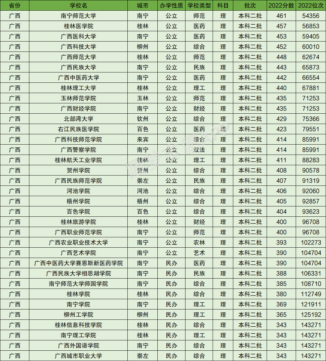 分数线的高低也能反应一所大学的实力强弱,以下将介绍2022年广西高考中,分数线最高的10所二本大学名单。