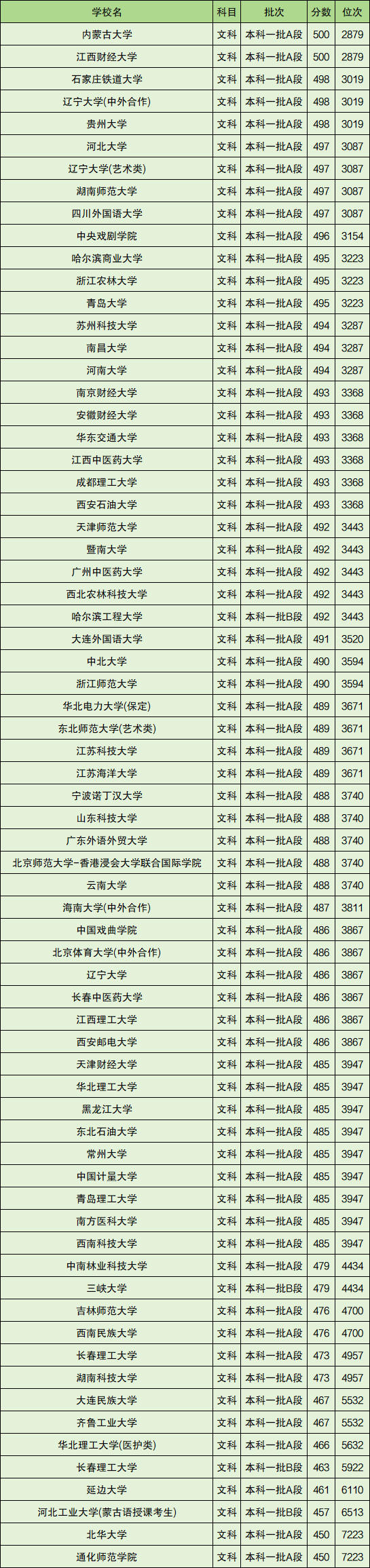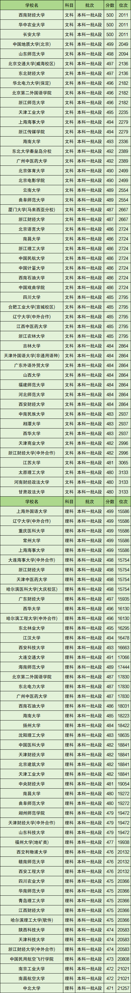 本文将带来全国部分地区2023年录取分数线在450分到500分的一本大学具体名单(含文科和理科),供查阅。