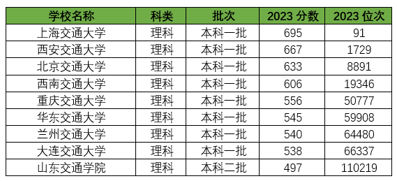 各交通大学在不同省份的录取分数线有所差异,下面就以这9所交通大学2023年在四川省文理科的录取分数线为例,为大家详细介绍。