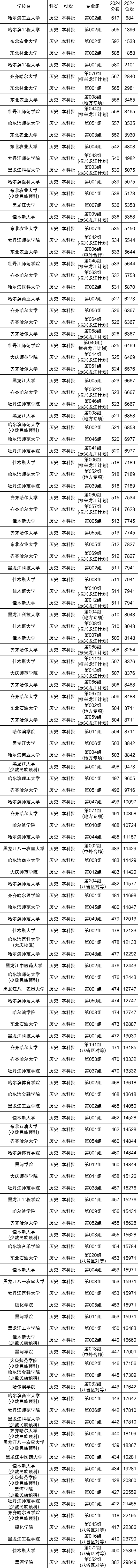 下面是2024年各黑龙江的公办本科大学在黑龙江省历史类的录取分数线(供参考):