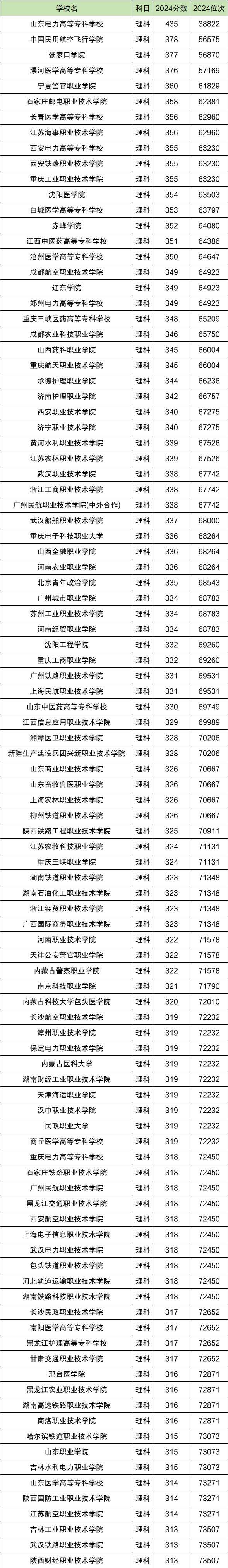 2024年内蒙古理科生上公办大专的最低分数为189分,比理科专科线(160分)高29分,最低分院校是西藏职业技术学院(位次83990名)。