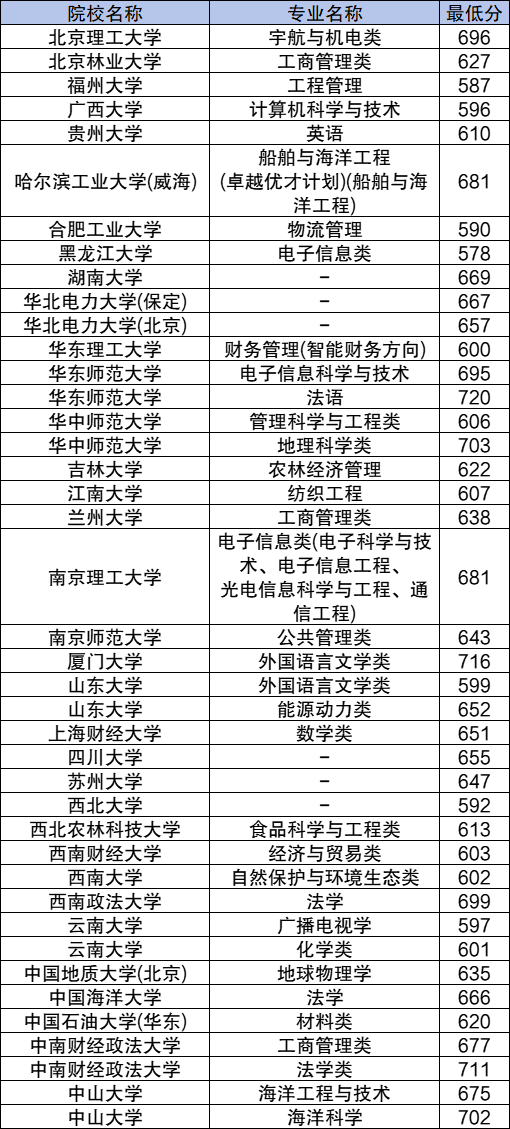 2024年高校专项计划各个大学分数线海南省一览表如下: