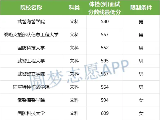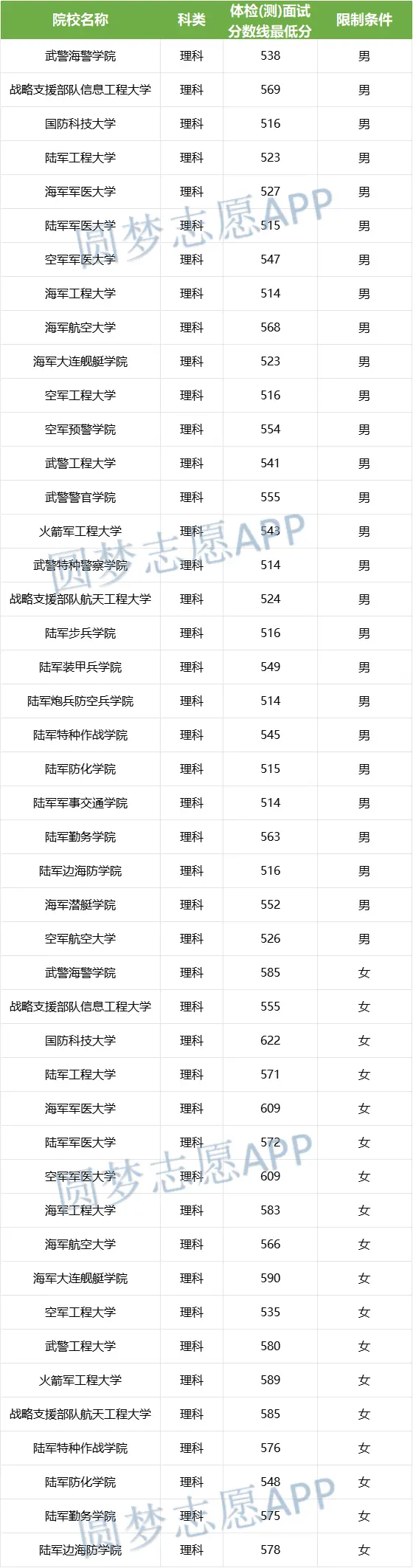 2023年河南文科一本线为547分,男生最少要超过一本线5分才能考上军校,女生最少要超过一本线47分才能考上军校。