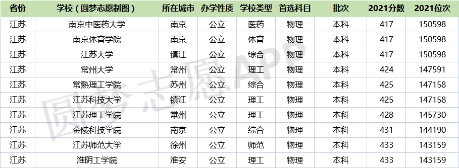 根据2021年江苏省高考各大学分数线可知,江苏省首选物理历史中分数线最低的十所公办大学如下: