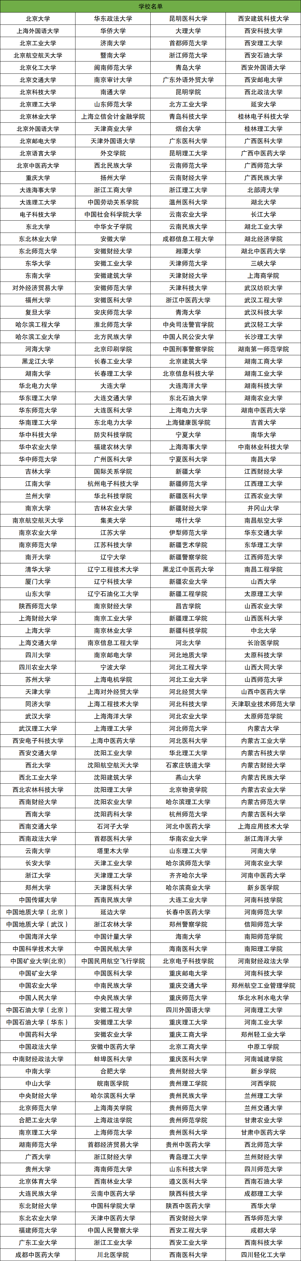 该计划的招生院校主要是中央部门所属高校和各省(区、市)所属重点高校,具体院校名单如下图:
