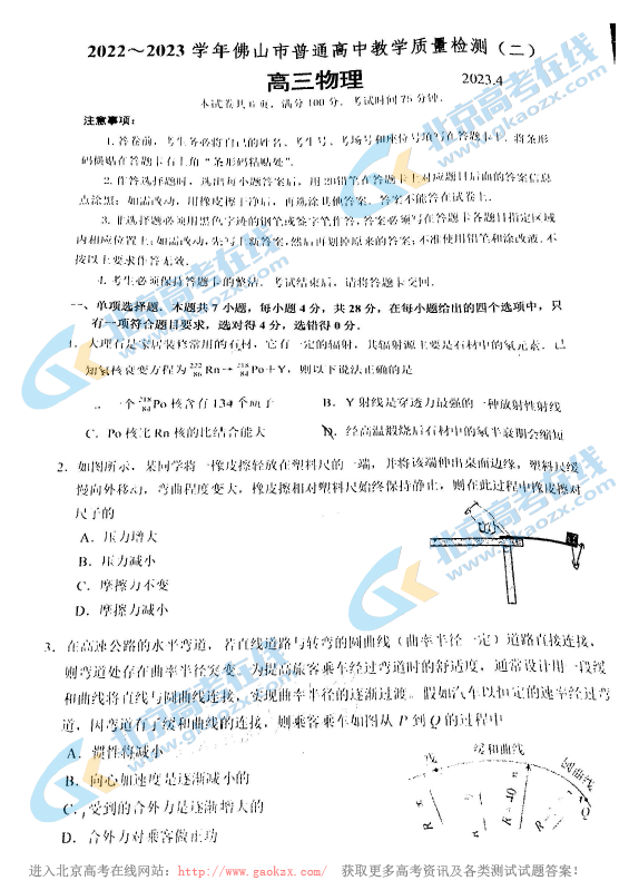 2023佛山二模考试将于2023年4月10日进行考试,本文将在考试结束后为大家更新2023广东佛山二模考试物理答案及试卷,下文为小编收集整理的2023佛山二模物理试卷及答案解析,并为大家附上2023佛山二模各科试卷答案。