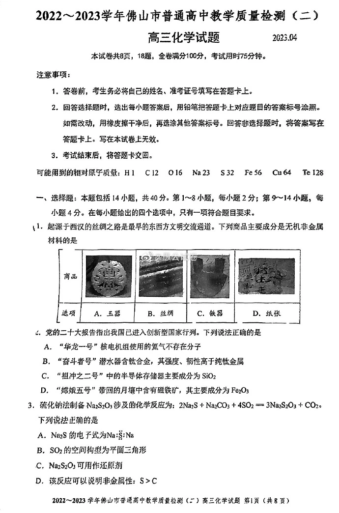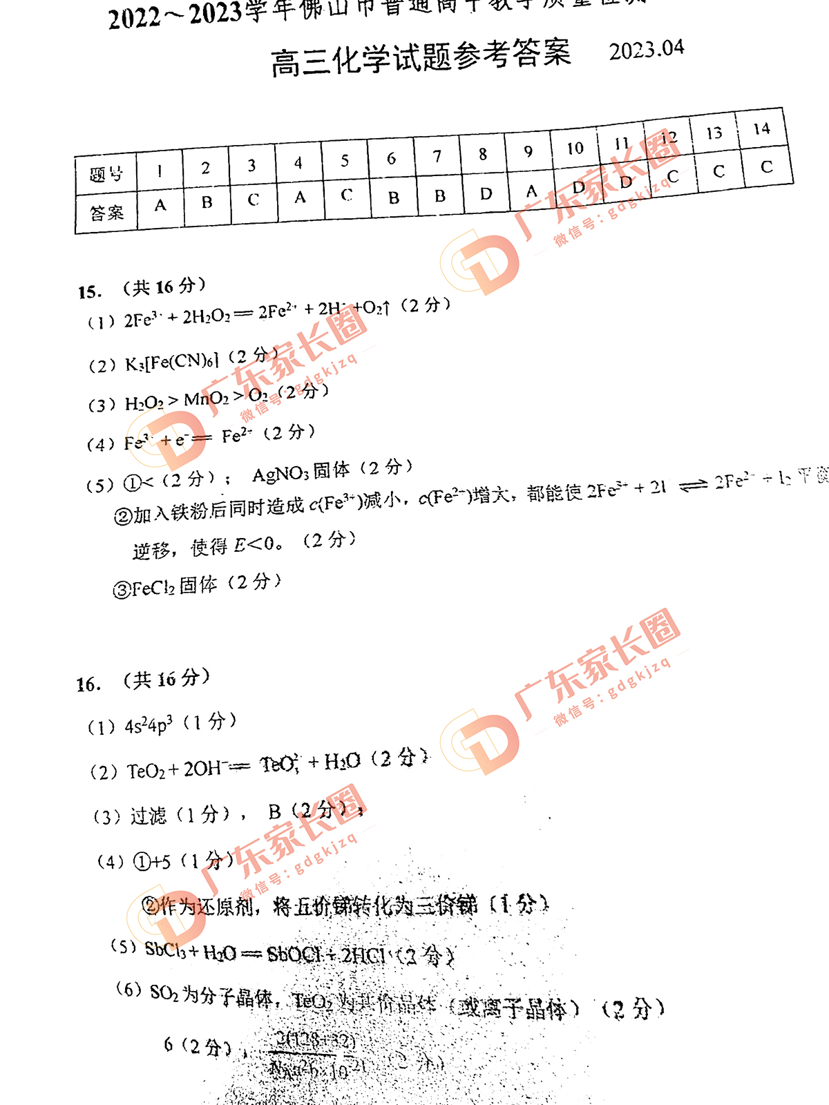 2023佛山二模考试将于2023年4月10日进行考试,本文将在考试结束后为大家更新2023广东佛山二模考试化学答案及试卷,下文为小编收集整理的2023佛山二模化学试卷及答案解析,并为大家附上2023佛山二模各科试卷答案。