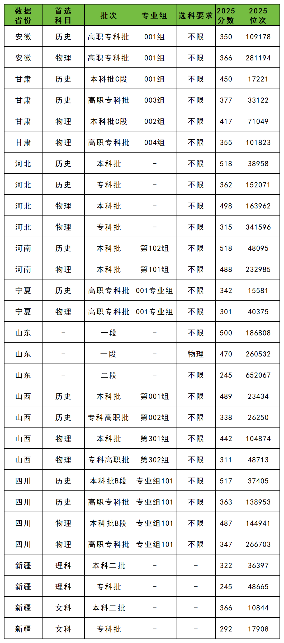2025年新疆交通职业技术大学在各省的录取分数如下: