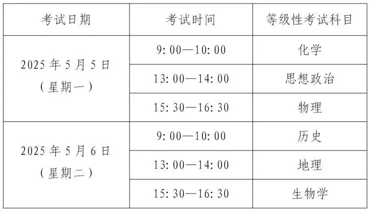 上海2025年高考科目时间表如下: