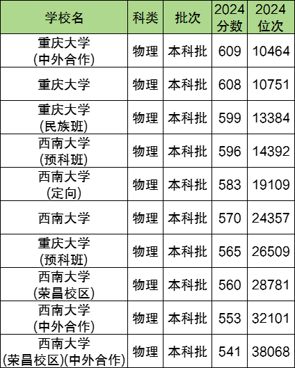 物理类分数线最高、最难考的是重庆大学(中外合作),2024年最低分609,最低位次10464。